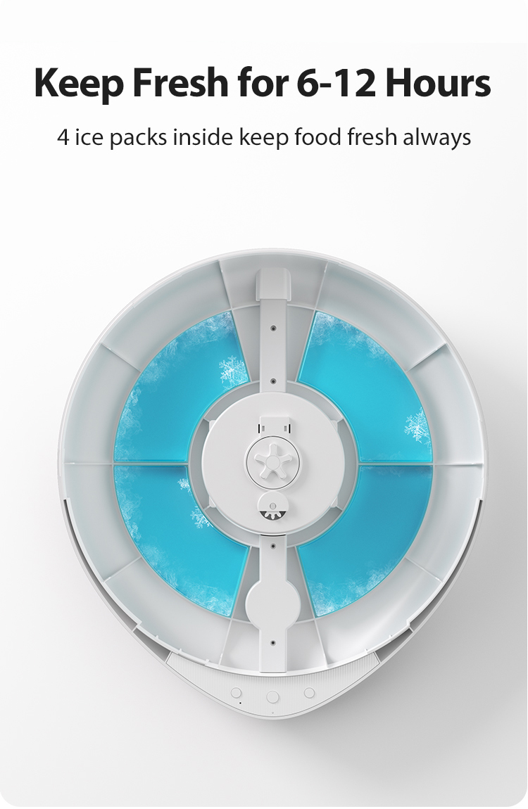 It accommodates not only kibbles but also wet, moist, various sized dry foods, and even snacks, supporting a balanced and scientific diet.   To retain the freshness of wet/semi-moist/fresh foods, it comes with 4 reusable ice packs.  These ice packs stay frozen for 6-8 hours and can keep wet food fresh for up to 24 hours.