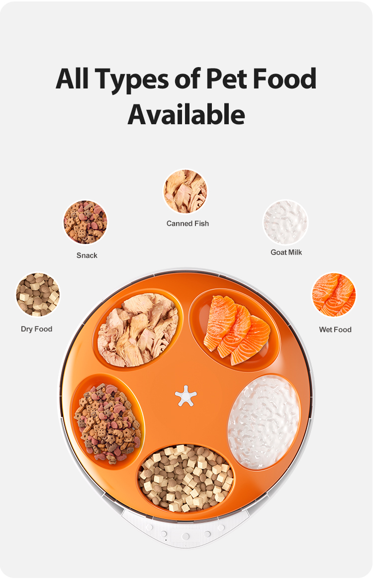 Dry and Wet Food Smart Automatic Electronic 5 Separated Meal Trays Cat Dog Water Food Bowl Timed Pet Feeder