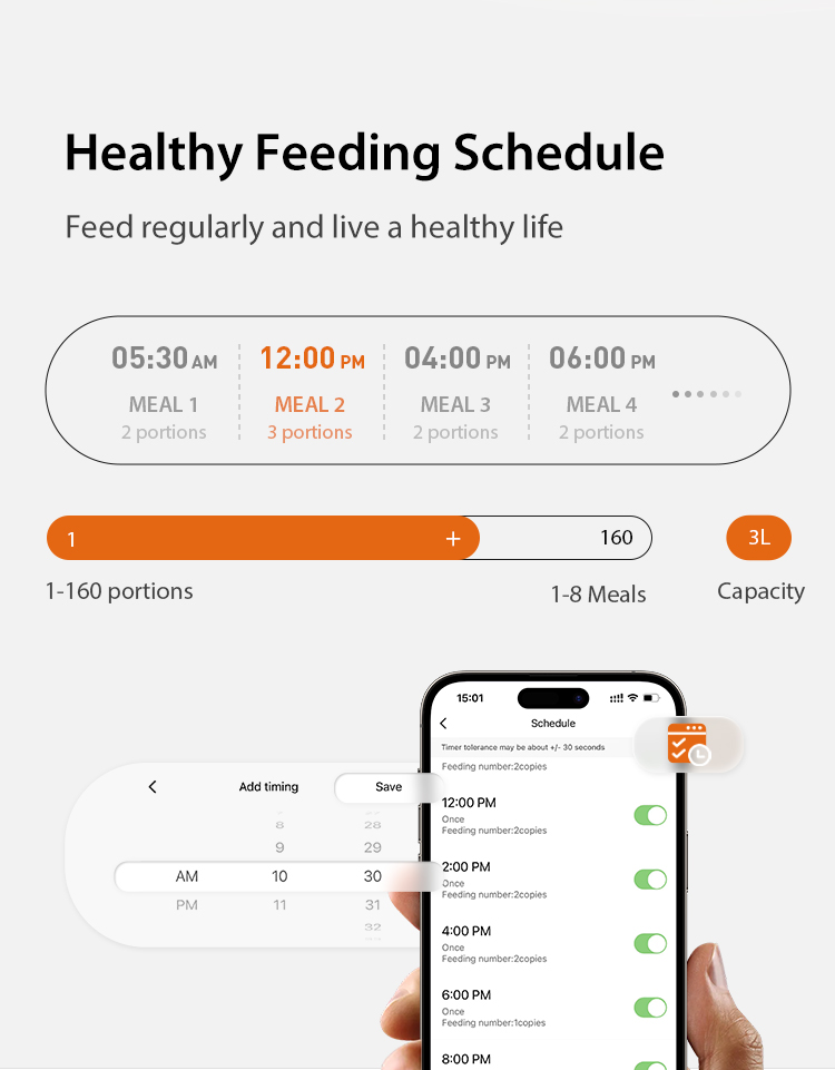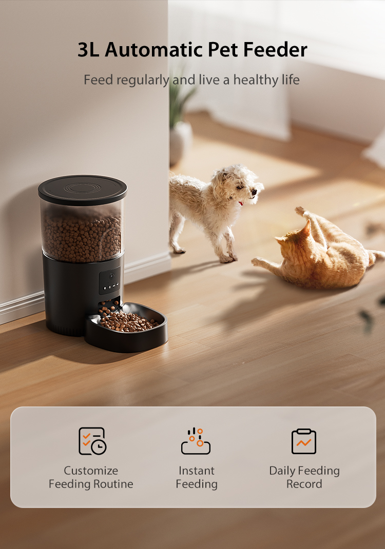Experience the future of pet care with our 3L smart pet feeder. Designed for small to medium-sized pets, this innovative device allows you to automate and personalize your pet's feeding schedule. With the capacity to hold up to 3L of food, it ensures an ample supply for your furry friend. Whether you're managing a busy schedule, want to control portion sizes, or ensure your pet's dietary needs are met, our smart pet feeder offers convenience and flexibility. Say goodbye to manual feeding and hello to a seamless and customizable feeding experience with our advanced smart pet feeder.