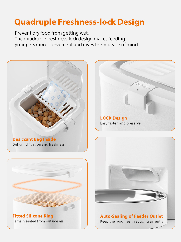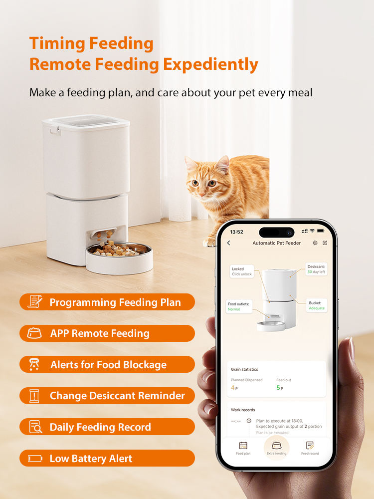 Introducing our innovative 6L automatic feeder for cats, a convenient solution to ensure your feline friend receives timely and portion-controlled meals. Designed to provide a hassle-free feeding experience, this automatic feeder allows you to schedule up to six meals a day, even when you're away. Ideal for busy pet owners or those with irregular schedules, our automatic feeder ensures your cat maintains a healthy diet and feeding routine. Suitable for both dry and wet food, this feeder is perfect for all adult cats and provides peace of mind knowing your furry companion is well-fed, even in your absence
